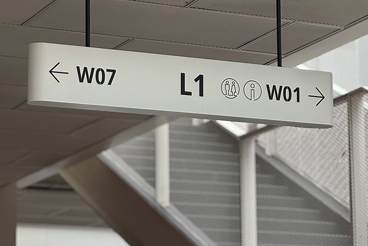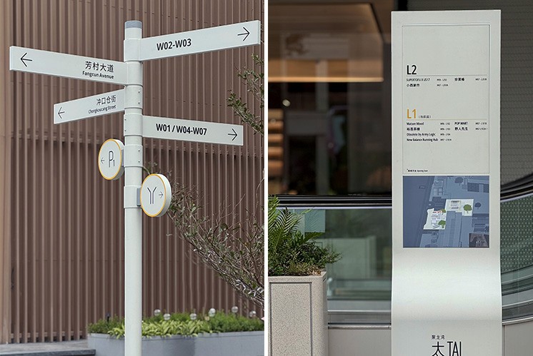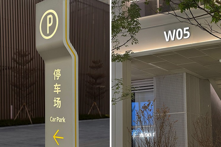 这套由麦肯标识打造的系统,让导视不再是空间附加物,而是与项目工业遗存、滨水特质融合的美学部分,以轻盈有序的形象,打造这一商圈的年轻气质。