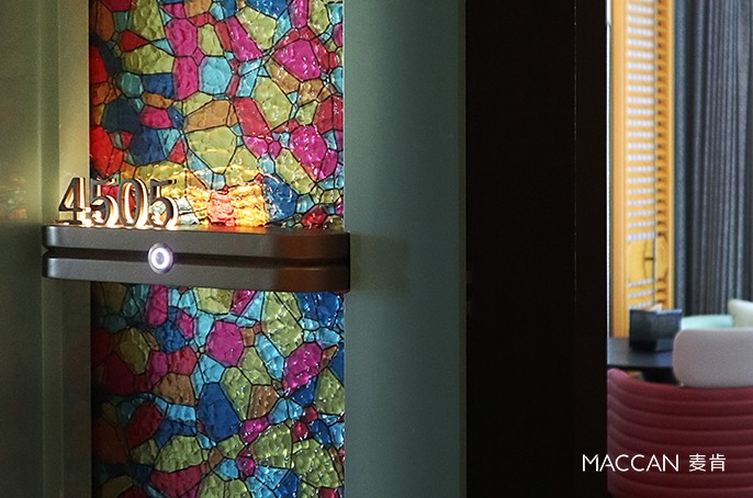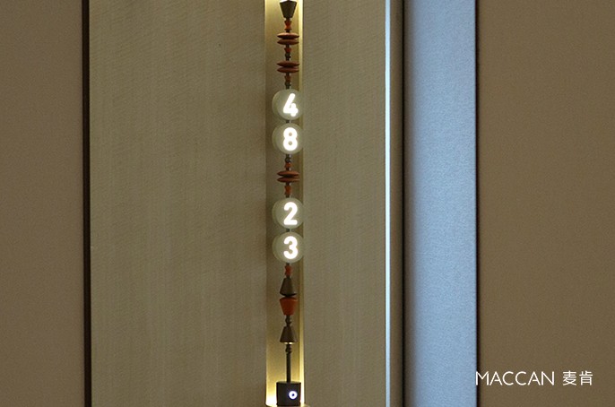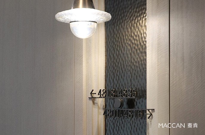 公区标识选取浅棕、深灰、古铜色为主色调,三种色彩既呼应广府文化的沉稳底蕴,又与酒店 “云端漫游” 的轻奢质感相得益彰。房间门牌号标识尤为亮眼,采用4种样式,不同楼层的门牌既延续整体创意逻辑,又融入细微视觉变化, “类似积木堆叠” 的创意镶嵌进转角区域,让门牌号不再是单纯的数字符号,更成为客房区域的艺术风景,让住客 “每一次抵达都有新鲜感”。