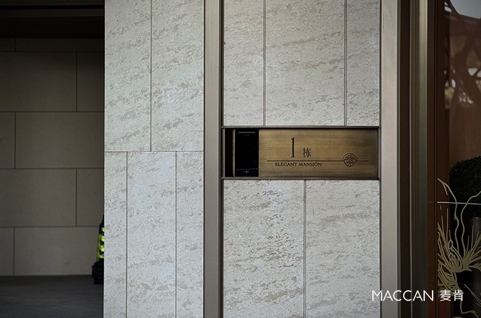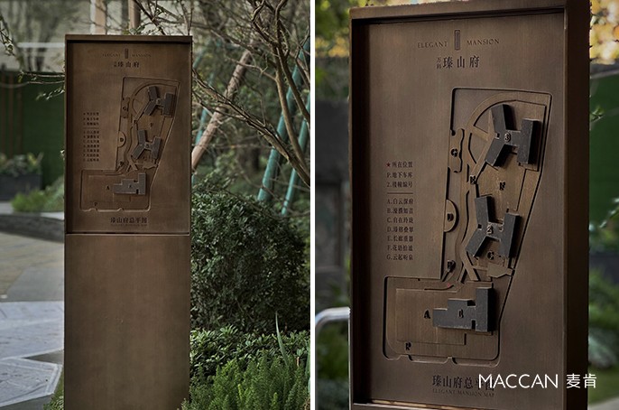 服务内容:麦肯以一贯的精湛工艺为每一位追求“山居”的居者打造理想的空间氛围,追求每一个细节都如同艺术品般精致完美,采用古铜做旧铭牌结合三维金属立体字的标识,营造出时光沉淀的韵味。