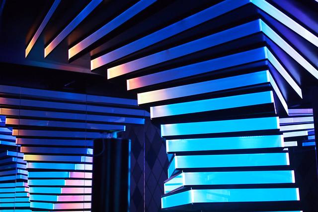vivo Lab 概念店是vivo全球第一家集品牌创意和体验于一身的互动空间。该空间以vivo blue为主色调,搭配大量的有色玻璃、金属、镜面和石材等材料,充满科技感,十分具有辨识度。