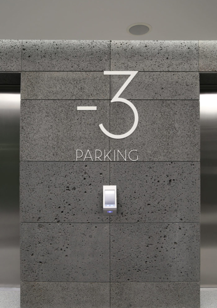 楼层索引标识设计一般放置在楼梯口和电梯口处,用于标明各楼层房间的单位。办公楼中的楼层牌主要用于标识楼层楼号,以便行人知道自己所在的楼层。清楚明晰的楼层索引是建筑必不可少的组成部分。