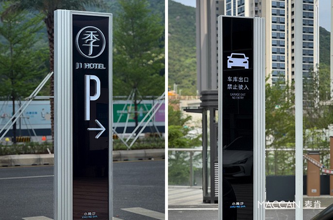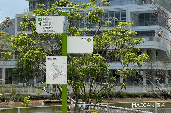 在深圳小梅沙的滨海热土上,觐海广场以 “办公 + 商业 + 生态” 的复合业态,成为该片区旅游放松、宜居办公的好去处。麦肯标识为项目量身打造的两套差异化导视系统,精准匹配办公与休闲两大功能区的空间属性,以设计语言赋能场景体验。